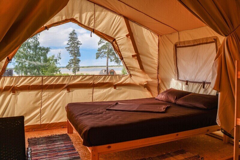Номера в кемпинге аутентичные, с минимумом лишних деталей, чтобы обеспечить вам идеальные условия отдыха. Расположены они на первой линии с выходом к озеру, где можно насладиться красотой рассветов и закатов в кругу близких.