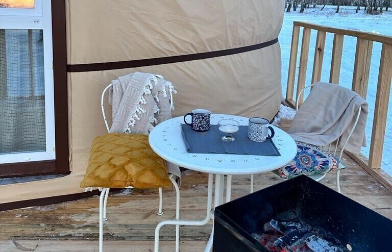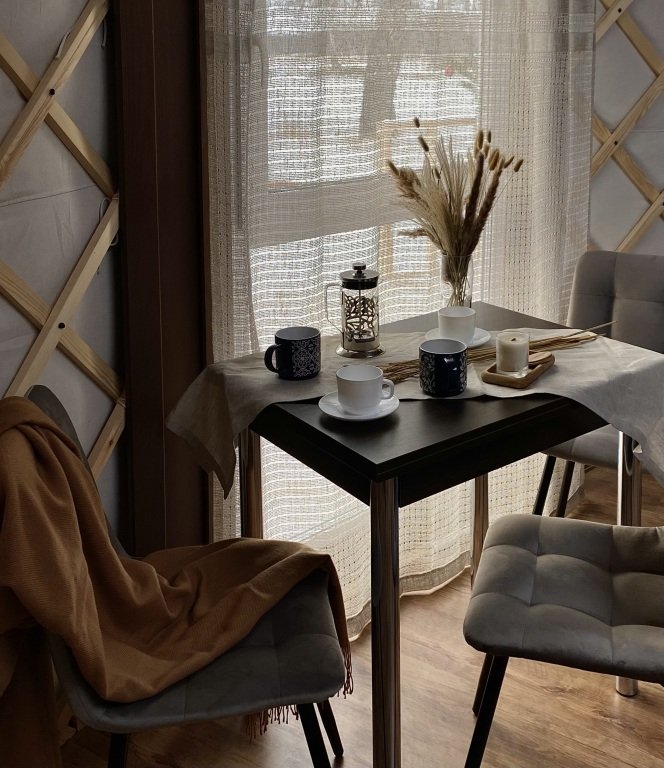 Юрты расположены на достаточном расстоянии друг от друга, чтобы обеспечить приватность и уединение. Из окон открывается восхитительный вид на озеро и окружающий лес.