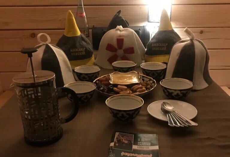 При аренде бани с чаном дарим крымскую соль на печку, медовый положок — ткань из улья, пропитанная пчелопродуктами. Также будем рады подарить чайную церемонию: 2 вида премиального китайского чая пуэр с дальневосточным липовым мёдом и тарелкой орехов с сухофруктами.