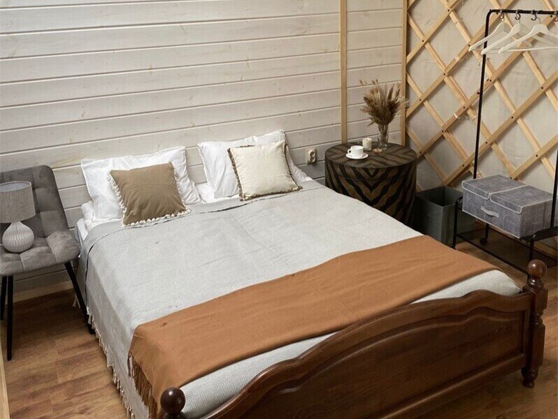 Двуспальная кровать, диван, кухонная зона, с/у с душевой кабиной, мангальная зона