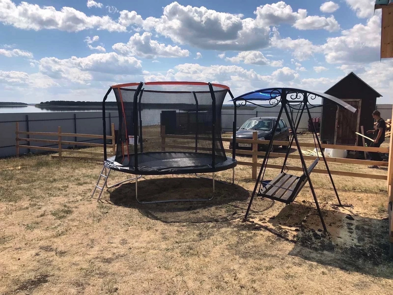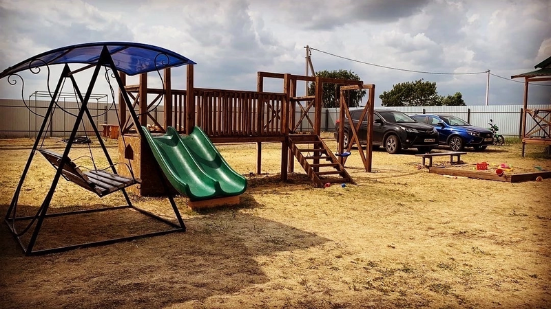 На территории беседка-кухня для приготовления пищи, детская и спортивные площадки, русская баня в гостевом комплексе «Катрин», батут, мангалы, бесплатная автостоянка.