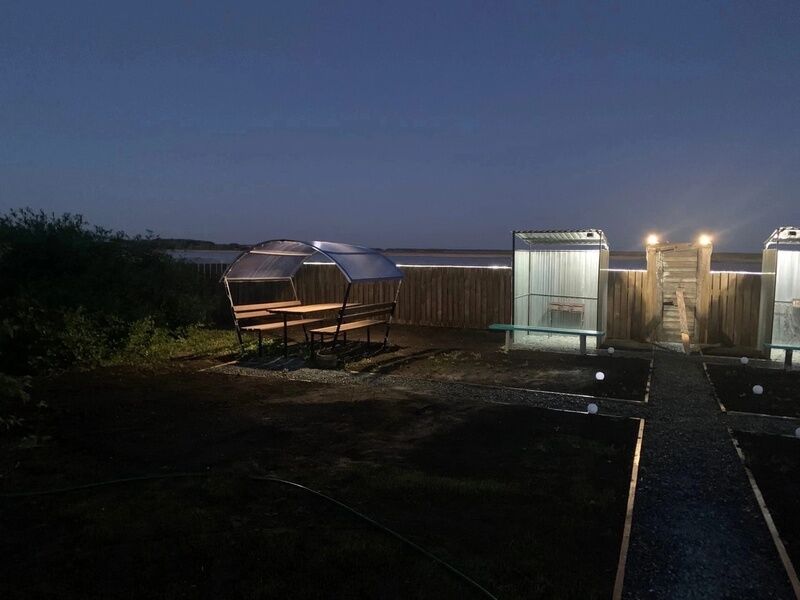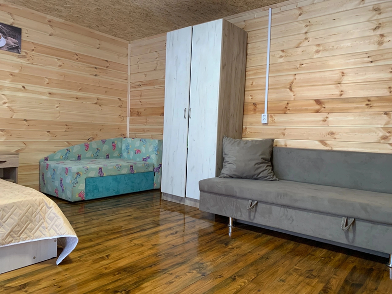 Уютная территория Гостевого комплекса состоит из 5-ти благоустроенных домов: 2 двухкомнатных дома — по 36 м2 вместимостью до 6 человек и 3 однокомнатных дома по 24 м2. вместимостью до 5 человек. До берега озера Медвежье — 80 метров, Дома оборудованы всем необходимым: туалет, душ, горячая и холодная вода, цифровое ТВ, двухспальная кровать, диван книжка, детская софа.