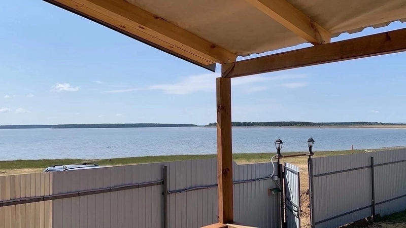 - дом находится на берегу лечебного озера. Расстояние 50 метров;
