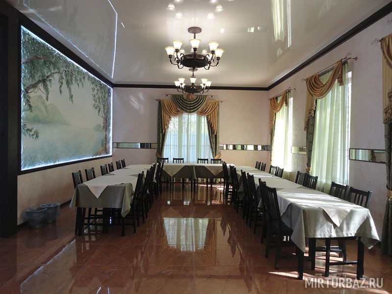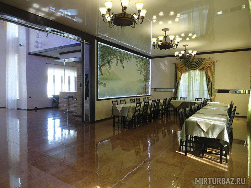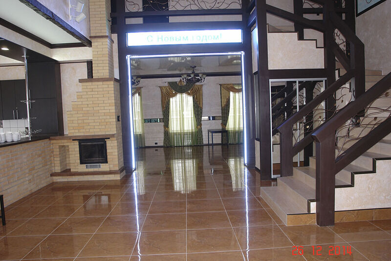 Особняк, рассчитанный на 55 человек, - без сауны, больше ориентирован на проведение корпоративных праздников и свадеб. В нём есть профессиональная кухня с набором ресторанной посуды, отдельный танцпол, бегущая строка для поздравлений, мангальная зона. На втором этаже также расположены спальни, в которых комфортно могут расположиться до 12 человек.