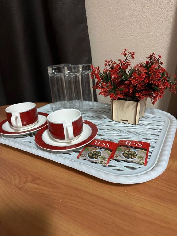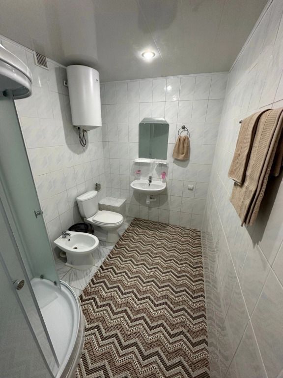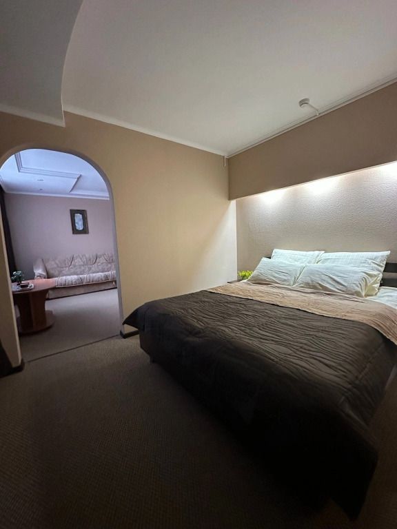 Две комнаты, двуспальная кровать, телевизор, холодильник, мягкая зона, душевая кабинка, туалет.