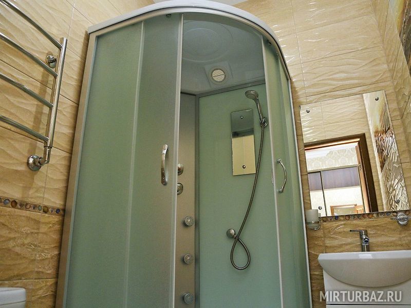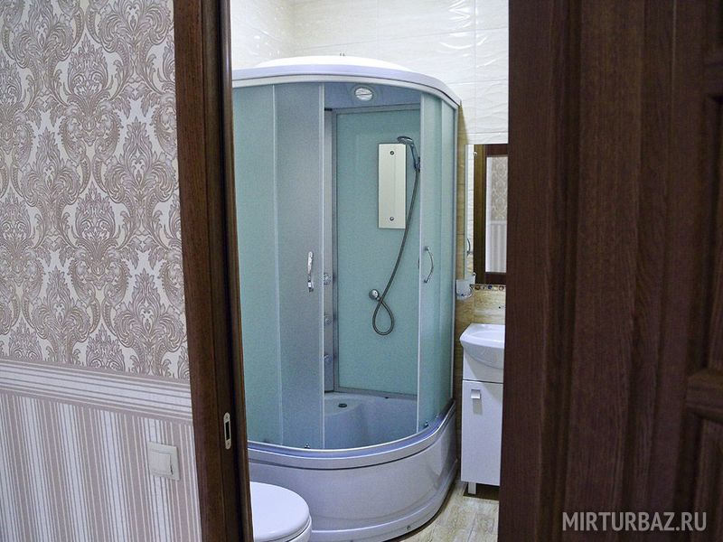 В номере имеется удобный шкаф-купе для одежды. Ванная комната - душевая кабина, унитаз, умывальник, зеркало. Предоставляются полотенца, туалетные принадлежности. Фен - по запросу.
