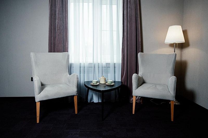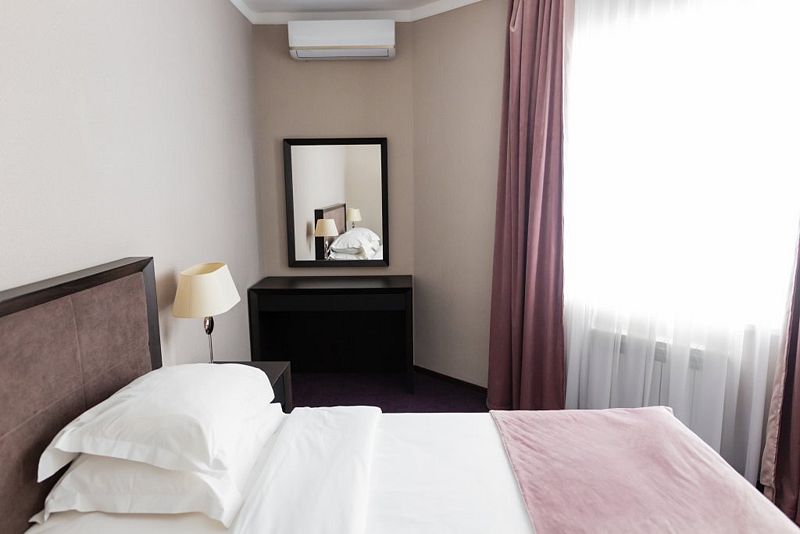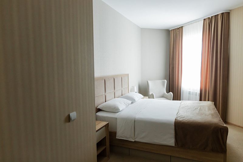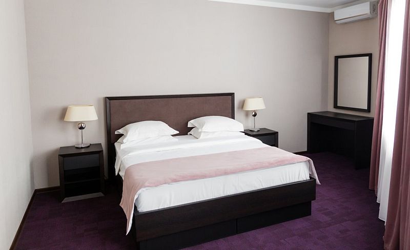 Двухкомнатный номер включает в себя: просторную гостиную, с большой кроватью, рабочую зону и просторную ванную комнату с душевой кабиной. Номер категории Люкс – это максимальный комфорт и уют, а также лучшие условия проживания.