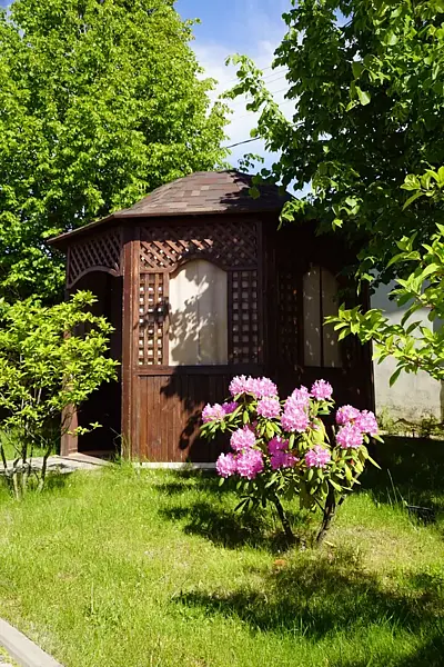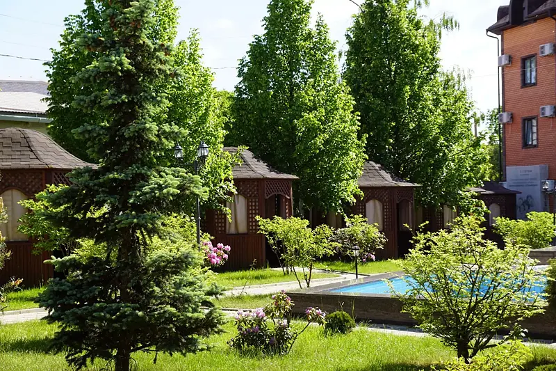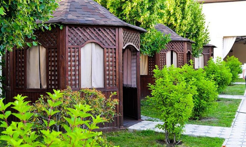 На территории отеля можно насладиться открытым бассейном с детской зоной, отдохнуть на веранде с легкими летними блюдами или организовать встречу в просторном коттедже для больших компаний.