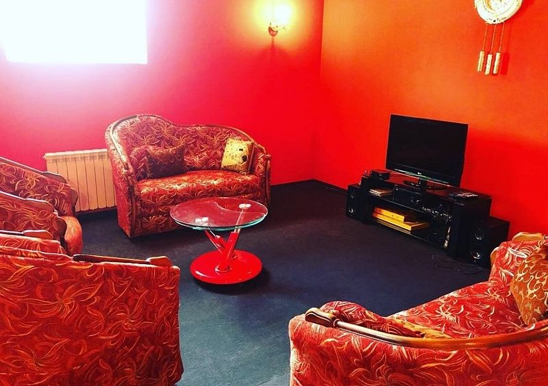 Номер находится в здании сауны. В вашем распоряжении: большая комната отдыха с мини кухней, мягкой мебелью, спутниковым ТВ, караоке, настольный футбол.