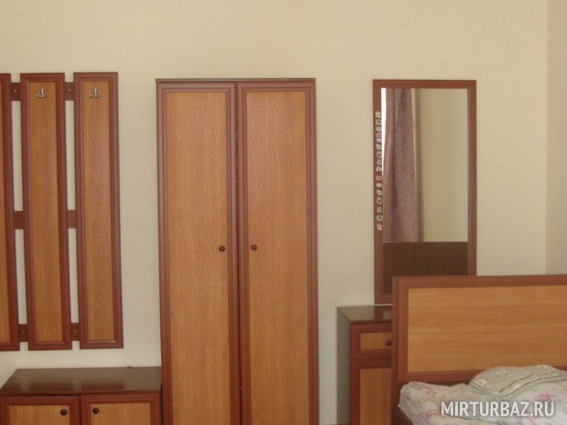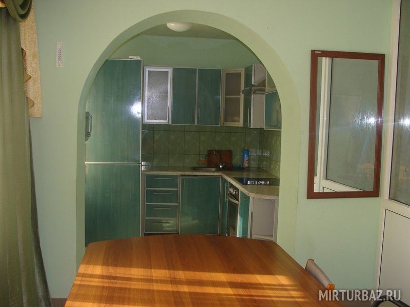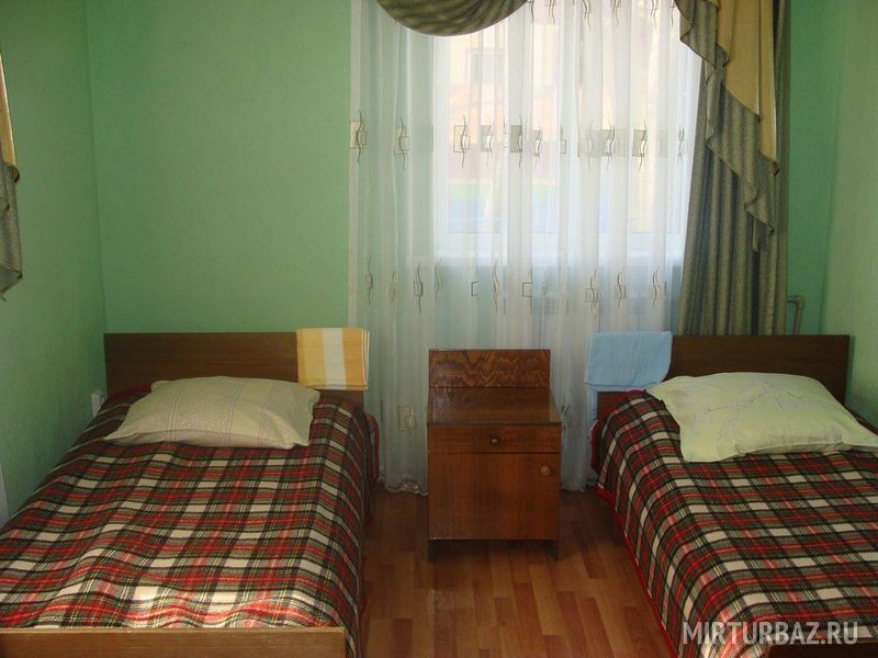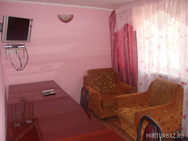 Домик с общей гостиной, двумя спальнями, кухней и санузлом.