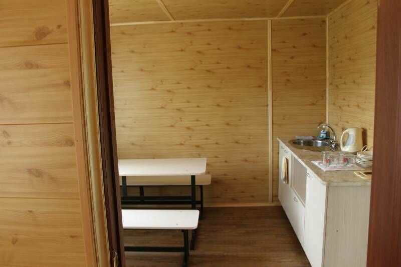 На территории базы отдыха расположены 4 домика отдыха со всеми удобствами. Каждый дом оборудован современной кухней, включающей в себя всю необходимую технику, холодильник. Туалетная комната: горячая вода, просторный душ.