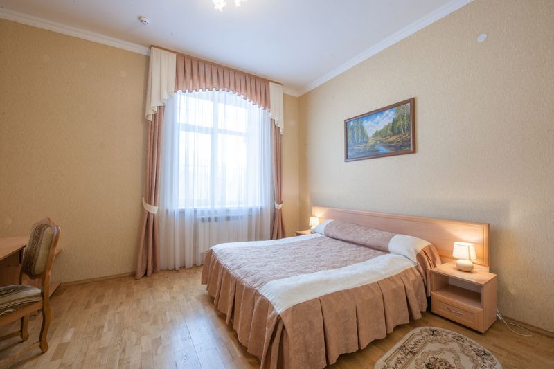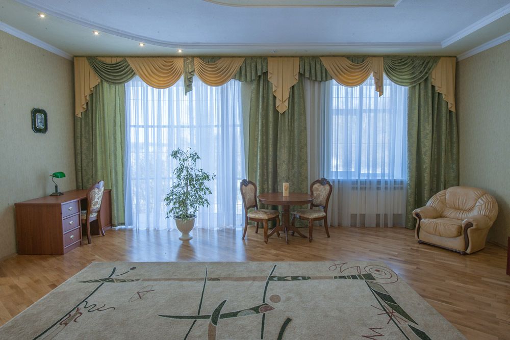 Просторный номер, выполненный в классическом стиле. Спокойные цвета, приятные ткани, современная мебель-достойный выбор для деловых людей.
