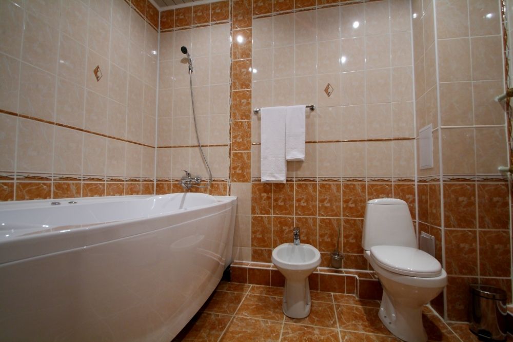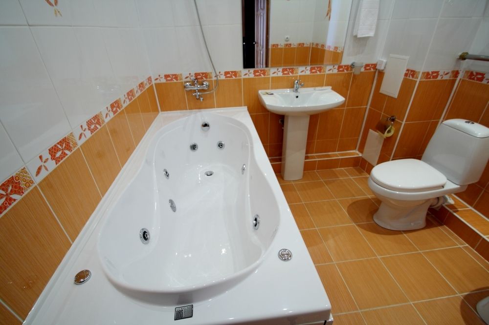 Ванная комната с гидромассажем. Каждый номер оснащён удобным рабочим столом и креслами.
