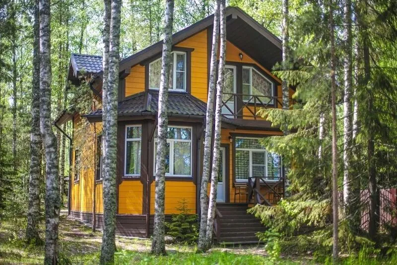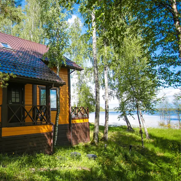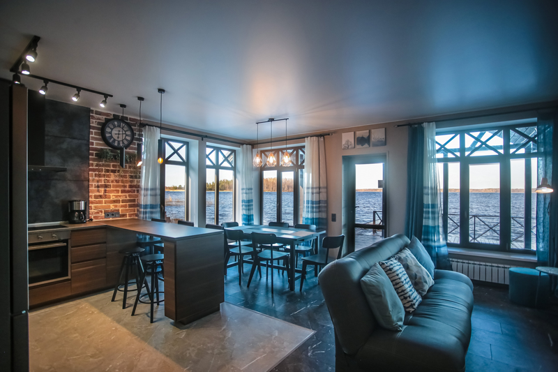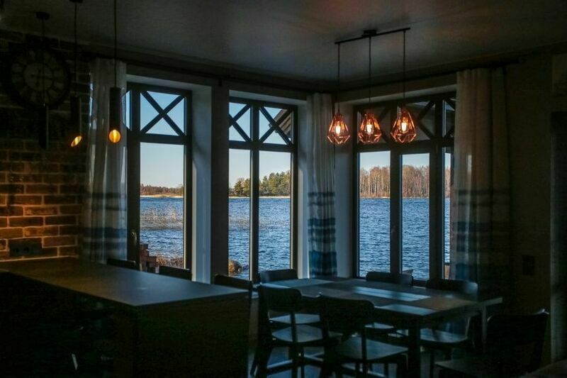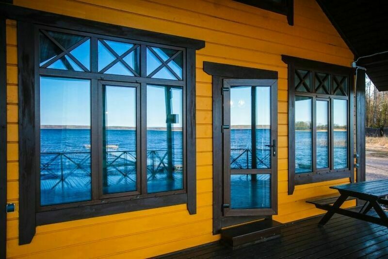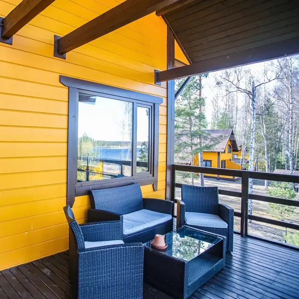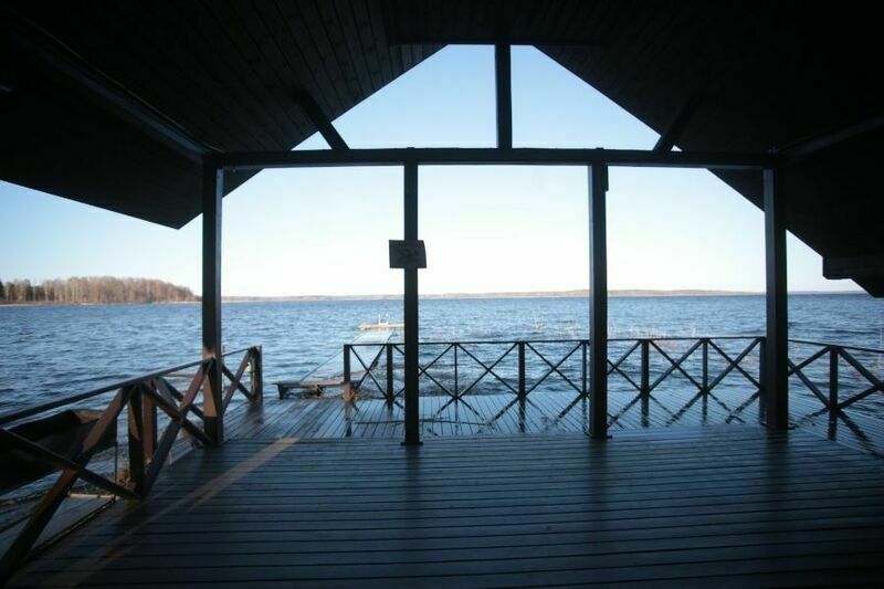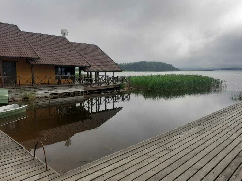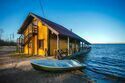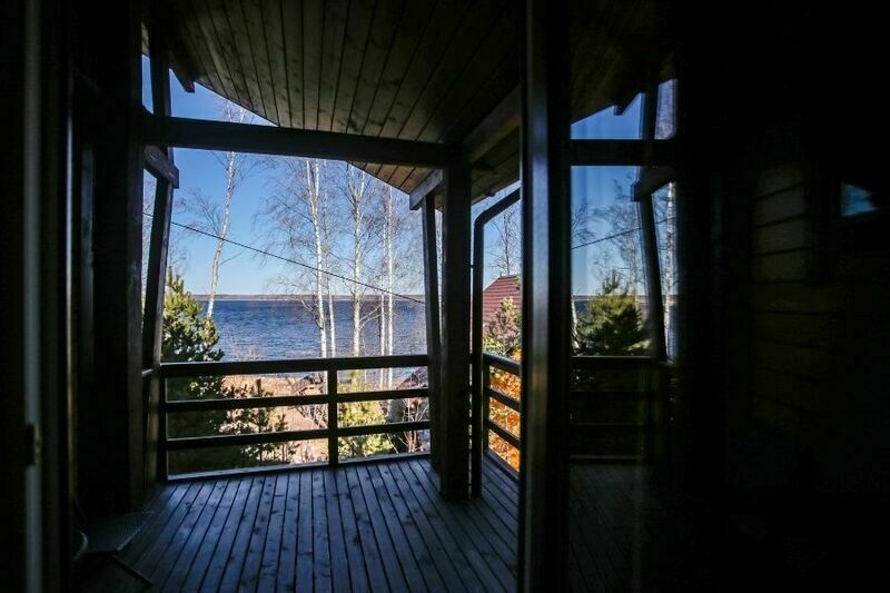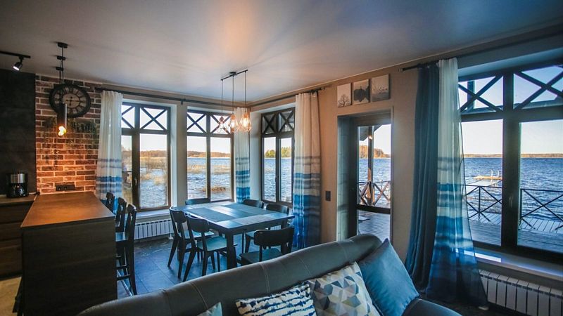 Большой двухэтажный дом прямо на берегу с большой террасой-пирсом, собственной сауной и кухней-гостиной, где из больших панорамных окон открывается великолепный вид на воду.