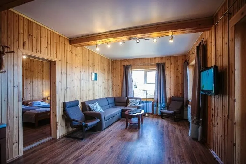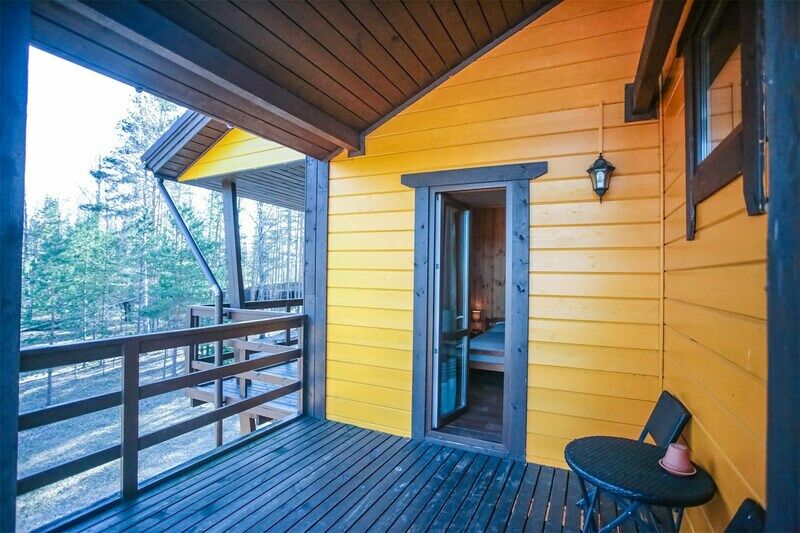 В номере просторная гостиная с раскладывающимся диваном и кофейным столиком, зона кухни со всем необходимым, большая ванная комната, уютная спальня и большая терраса 17 м2 с великолепным видом на Вуоксу.