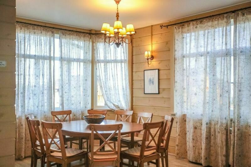 Большой коттедж для компании или семьи. Устройте отдых в стиле "Хюгге" - уютные детали, ужин большой компанией за круглым столом, красивая скатерть, треск камина.