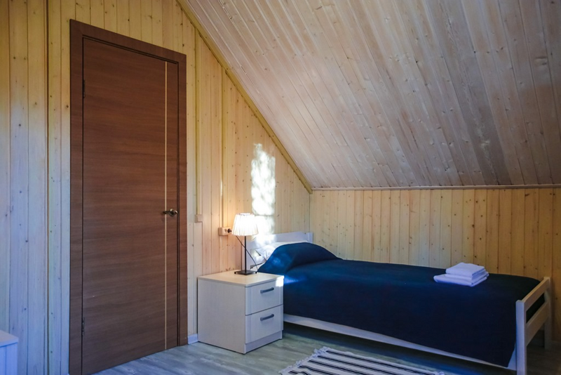 Для удобства гостей в домах есть большая кухня-гостиная со всем необходимым для готовки, 2 санузла, сауна, одна спальня на первом этаже и четыре спальни на втором этаже. Все санузлы оснащены тёплым полом. Рядом с домом есть своя беседка с мангалом. Дом рассчитан на 10 гостей, возможно дополнительное размещение 2х гостей в гостиной на первом этаже.