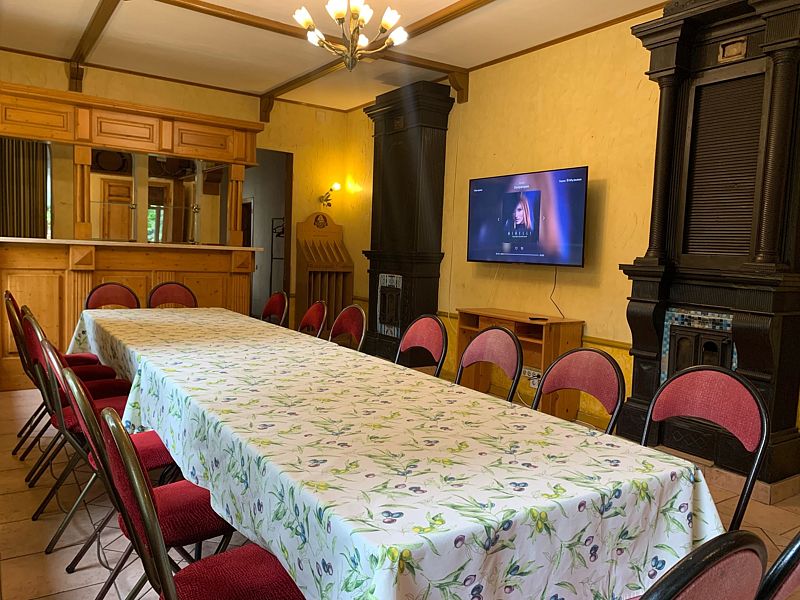 Великолепный 2-х этажный коттедж, в котором свободно размещаются 15-20 человек (6 комнат, с верандой и летней террасой, с кухней со всем необходимым и ванными комнатами на каждом этаже). Эксклюзивные действующие камины XIX века - каминный зал.