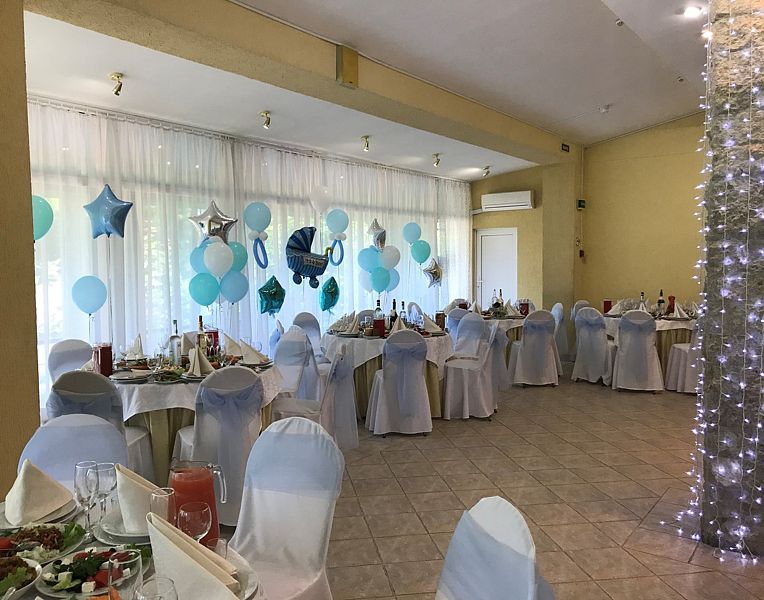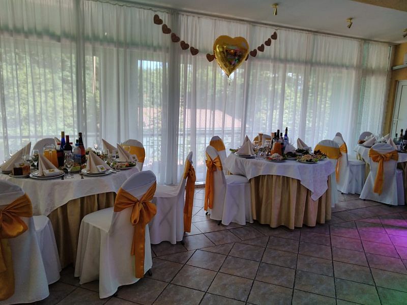 Молодым парам предлагается ресторан для проведения свадеб, где цены приятно удивят молодожёнов и их родителей. Ну а для празднования юбилеев, выпускных вечеров или корпоративных вечеринок — изысканный банкет за городом.