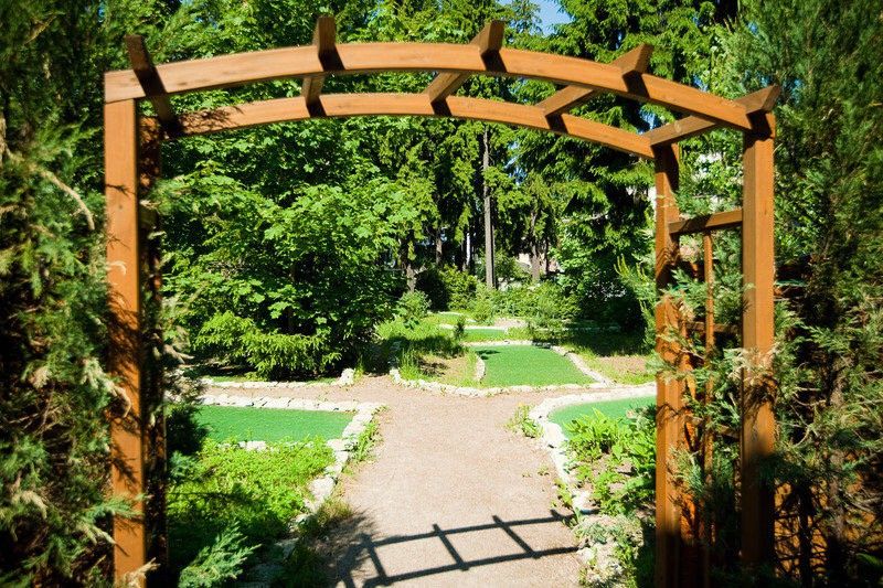 Вы можете арендовать площадку для мини-гольфа на 18 лунок.