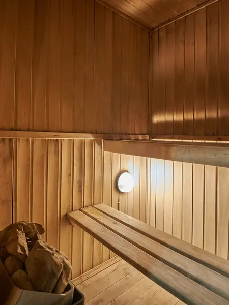 Сауной пользовались. Сильного жара не было. Нам с ребенком было как раз.