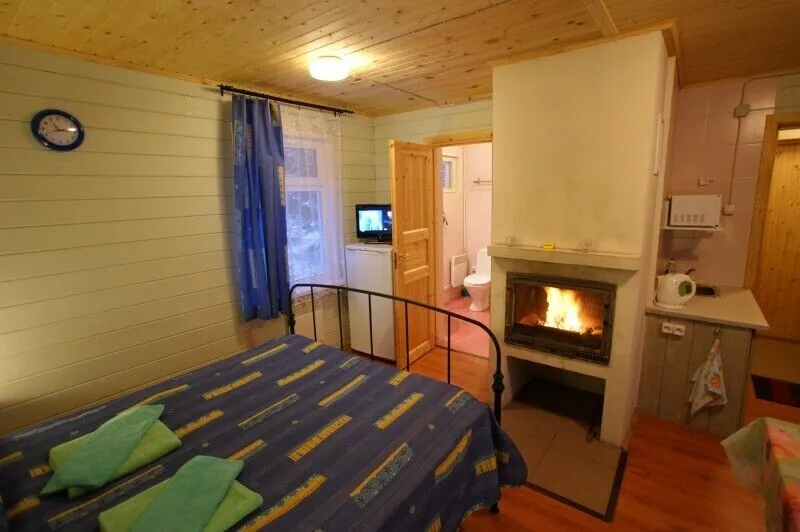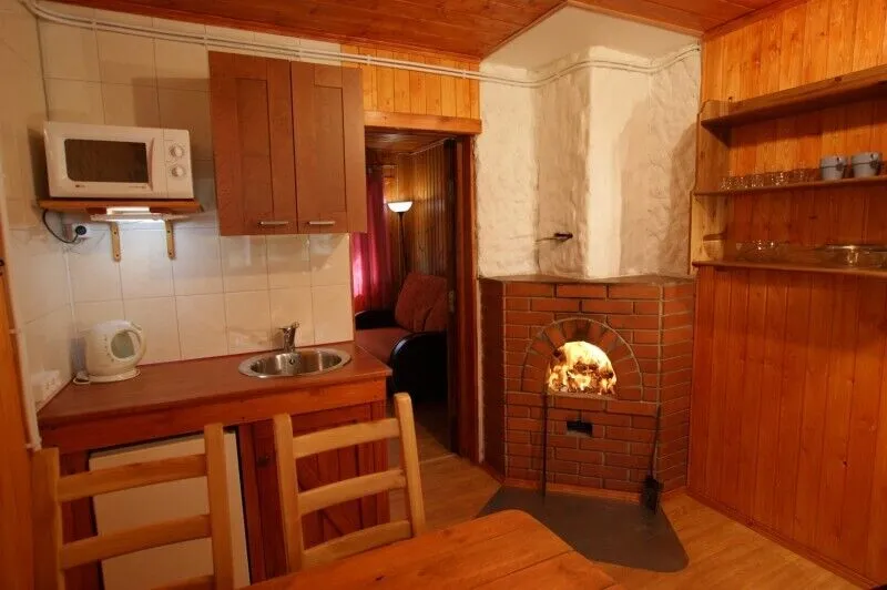 Коттедж "Комфорт" на двоих представляет из себя половину дома с отдельным входом, верандой и сауной. На веранде можно обедать. Уютная отделка внутри коттеджа, есть печка (ознакомьтесь с инструкцией).