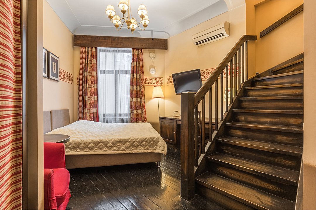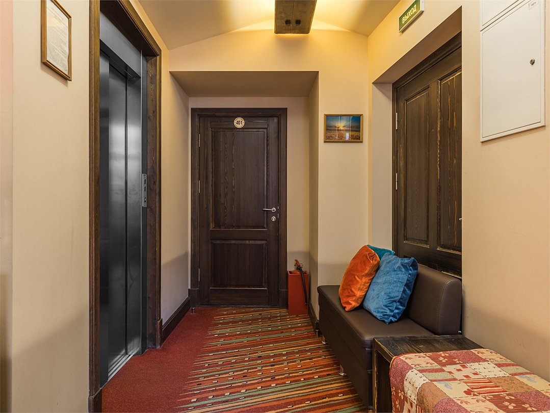 Семейный 2-х этажный полулюкс для некурящих, с сан. узлом, душем или ванной, феном, бесплатными туалетными принадлежностями и Wi-Fi. Во всех комнатах есть телевизор, сейф, холодильник, кондиционер, мебельный гарнитур, а также письменный стол. На 1 - уровне расположена гостиная, 2 односпальных кровати, которые при необходимости сдвигаются и делается 1 большая кровать, туалет. На 2-м уровне расположена спальня с кроватью queen size (160*200) и ванная комната (совмещенный санузел с душем или ванной). Возможно по предварительному запросу подготовить дополнительное спальное место - еврораскладушку. Максимальное размещение 5 взрослых и 1 ребёнок до 4-х лет без предоставления отдельного спального места. В зоне общего пользования на этаже есть кулер с горячей и холодной водой, микроволновая печь, утюг и гладильная доска.Услуги и удобства