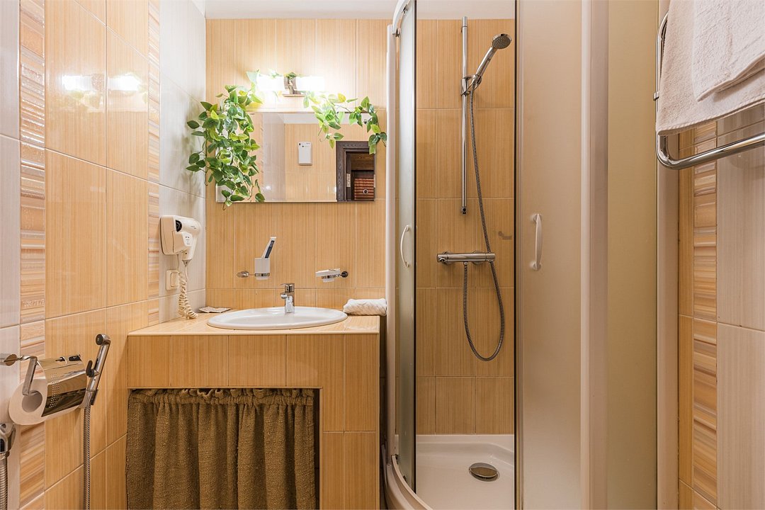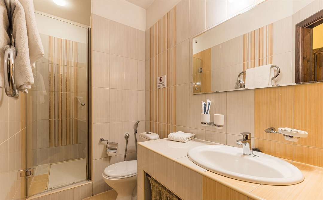 - с ванной или душевой кабиной