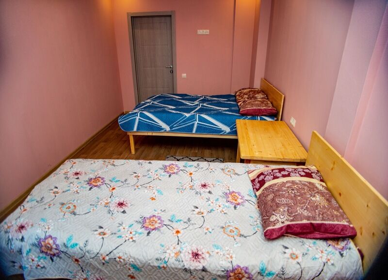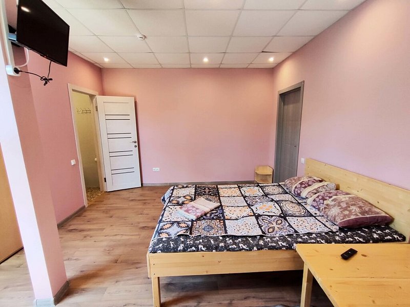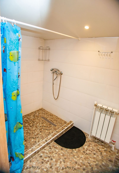 В номере двуспальная и односпальная кровати, собственная ванная комната.