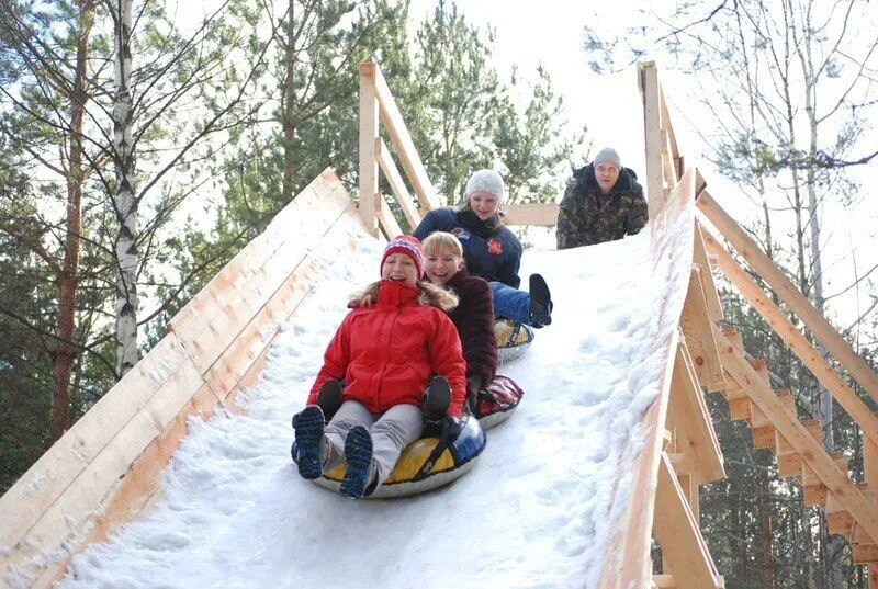 - Большая и малая горка для катания на ватрушках (в прокате более 25 ватрушек 1 м в диаметре)