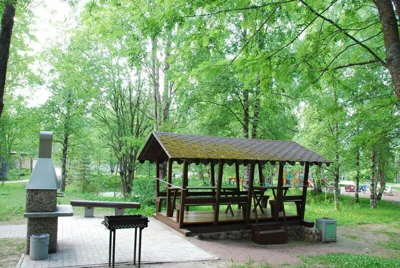 - Крытая площадка «Лесная» (до 120 чел.) столы, скамейки, деревянный танцпол, крытая сцена, электроточка 4 кВт, летняя кухня, 2 мангала, освещение, водопровод.