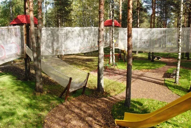 Веревочный парк для детей (от 5 до 14 лет). Состоит из 9 препятствий разной степени сложности. 2 тарзанки где дети самостоятельно едут на подвешенном тросе между деревьев. Бочки — 2 трубы подвешенные горизонтально (качаются). Лапки — пройти по натянутому канату без страховки. Лианы — не запутаться в лианах свисающих с деревьев. Бревно — переправиться на другую сторону ущелья по незакрепленному бревну. Паутина — пролезть через большую паутину. Веревочный парк оснащен страховочными сетками. Время работы с 10.00 до 22.00. ОБУВЬ ОБЯЗАТЕЛЬНА. Возраст детей допускающихся для прохождения препятствий от 5 до 14 лет, под присмотром родителей или совершеннолетних лиц.