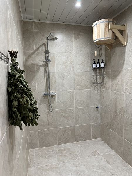 Баня состоит из большой кухни-гостиной с панорамным видом на озеро, зоны парилки, помывочной и зоны отдыха с террасой. К бане предоставляются полотенца, шапочки, аромамасла, чай или кофе. Отдельно веник - 500₽. Вместимость бани - от 2 до 4 человек.