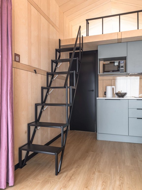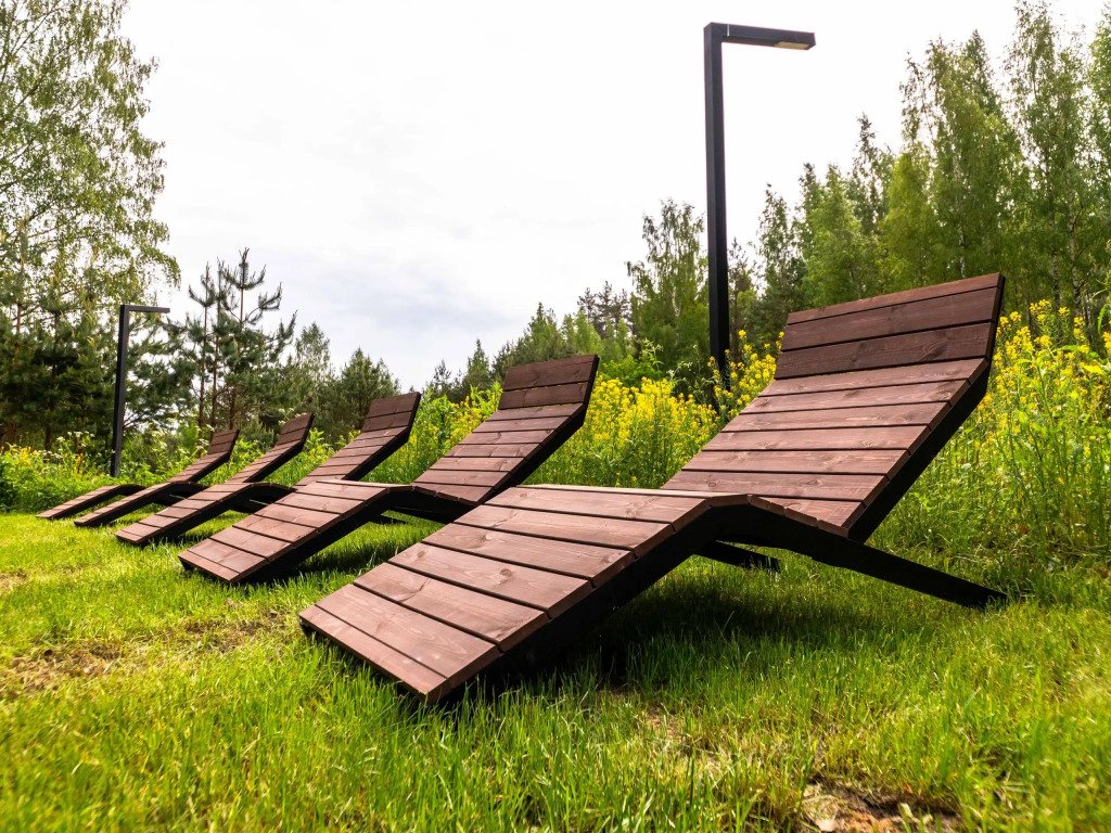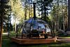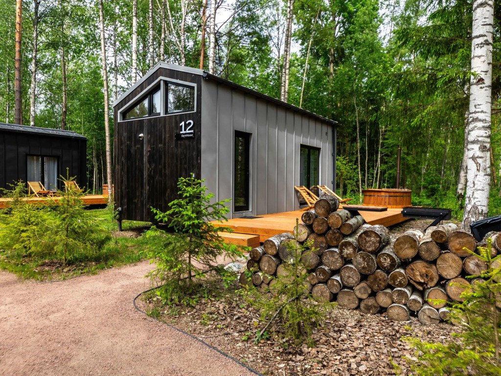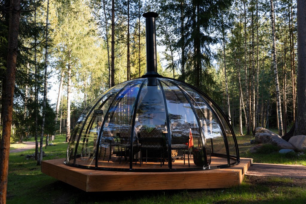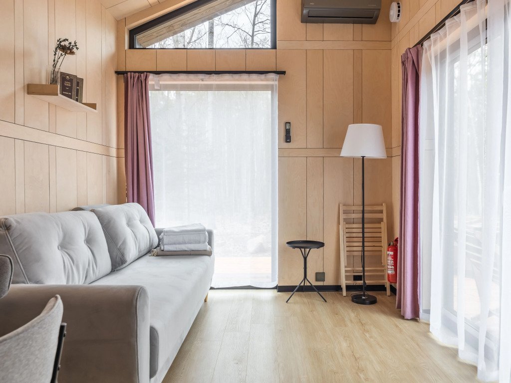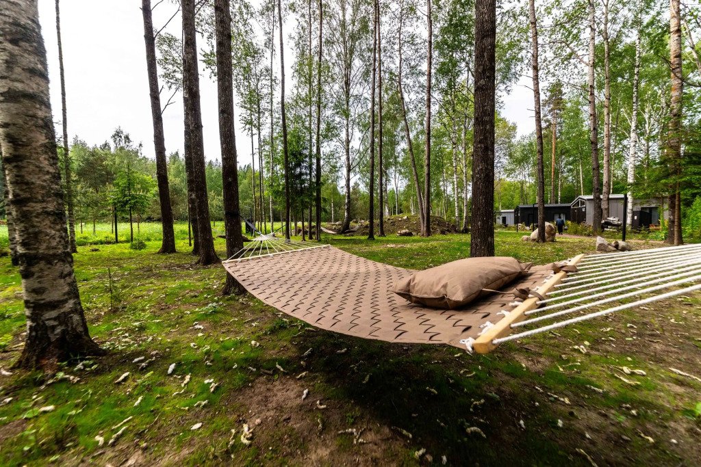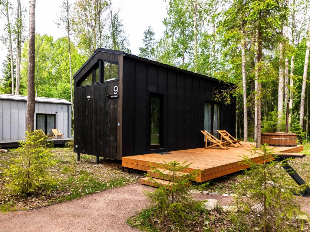 На территории находятся 10 мини-коттеджей с панорамными окнами и видом на хвойный лес, а также мангальная зона, баня на дровах, терраса для групповых программ на свежем воздухе. Wi-Fi на территории глэмпинга отсутствует.