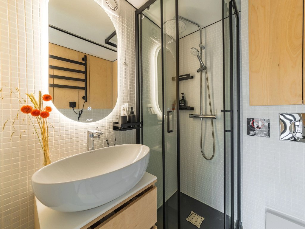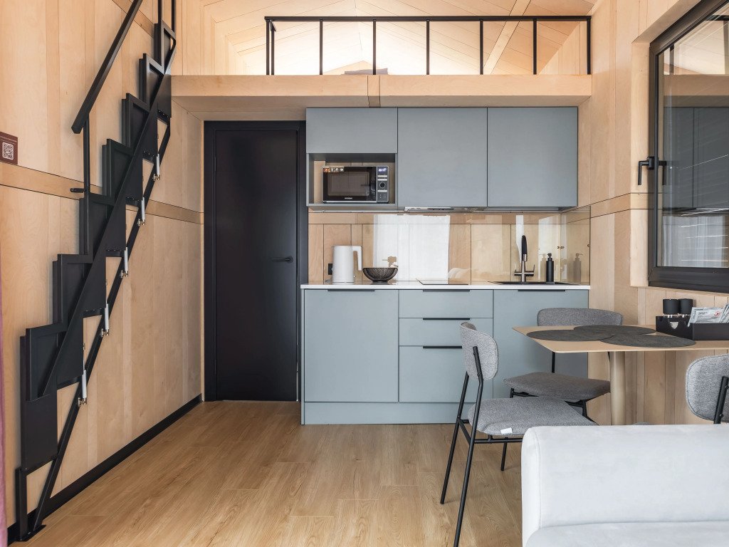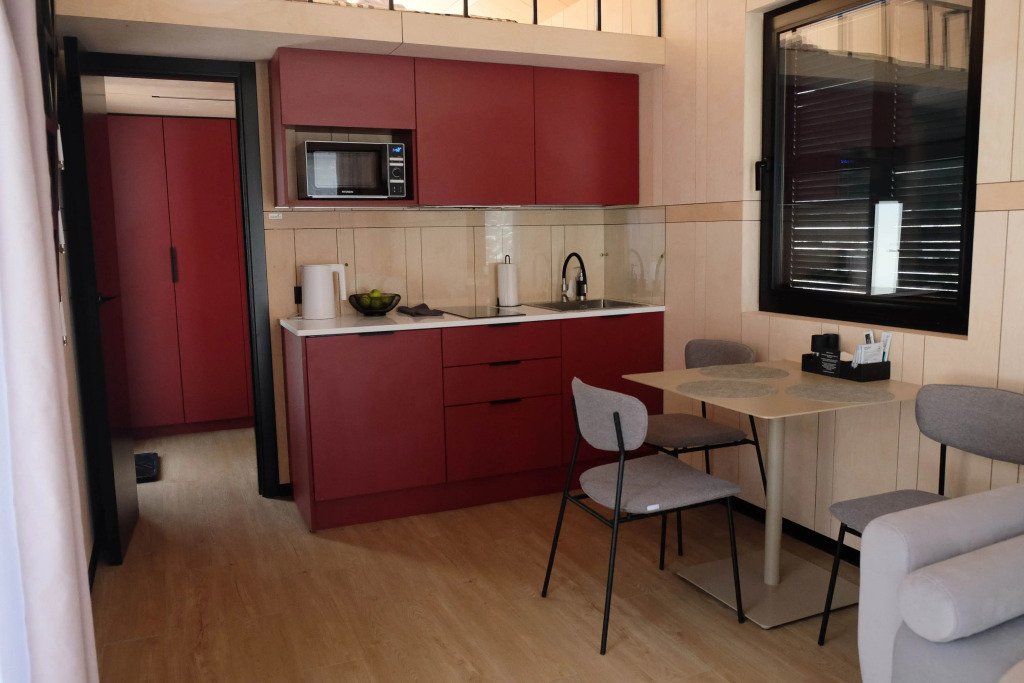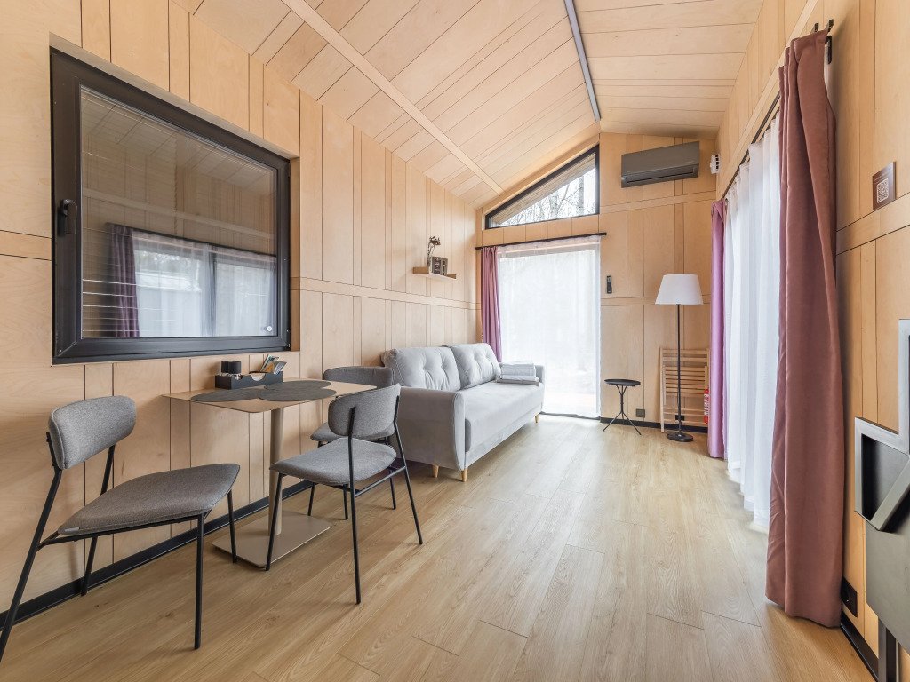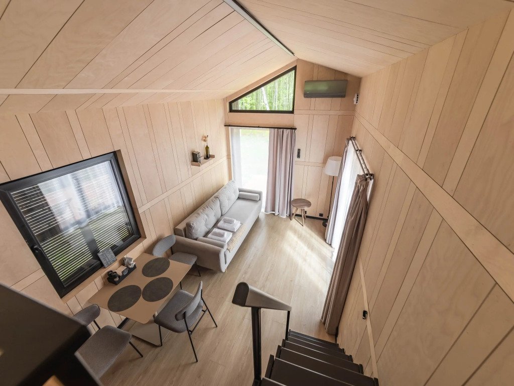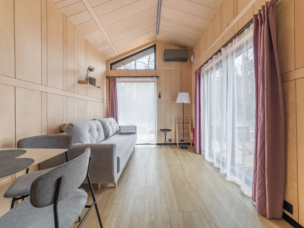 На территории находятся 10 мини-коттеджей с панорамными окнами и видом на хвойный лес, а также мангальная зона, баня на дровах, терраса для групповых программ на свежем воздухе. Wi-Fi на территории глэмпинга отсутствует.