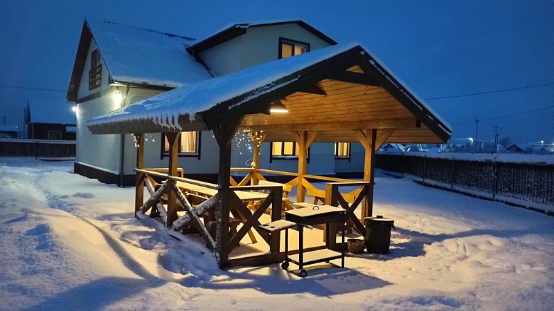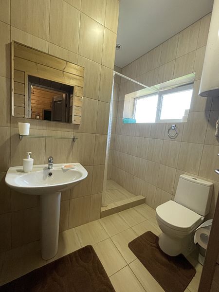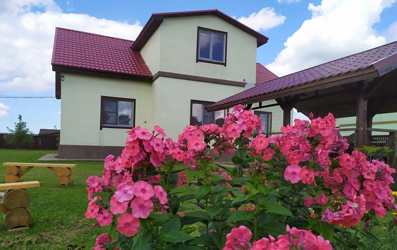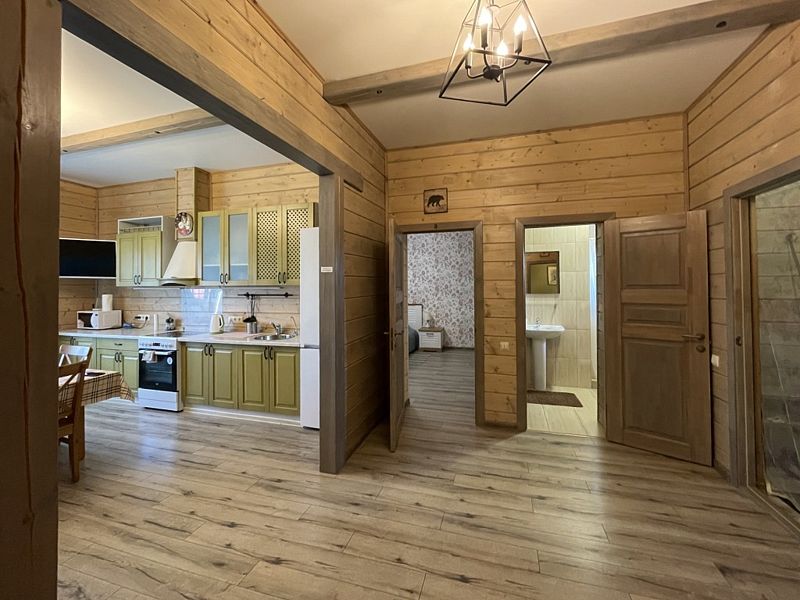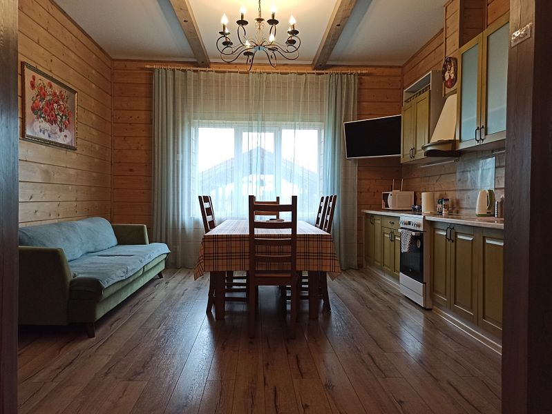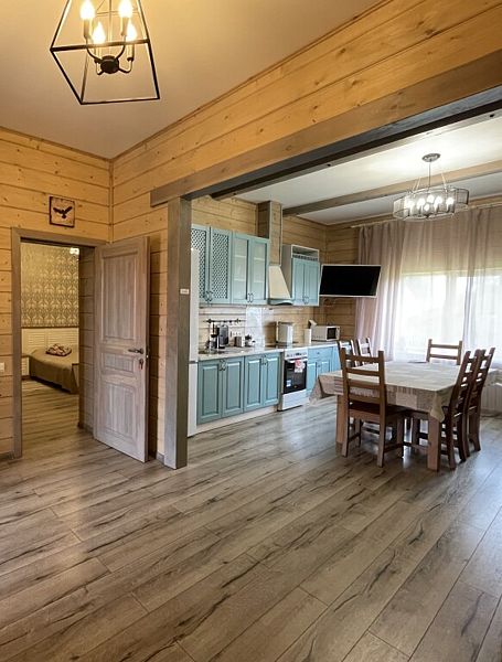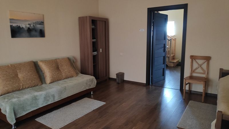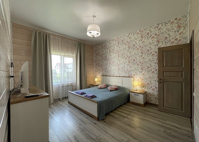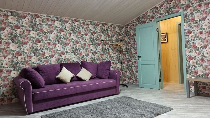 Дом с тремя спальнями. Вмещает до 10 гостей. 6 односпальных кроватей, 1 двуспальная 160х200 см, диван-кровать. 2 санузла. Спутниковое ТВ, Wi-Fi. Кухня-гостиная оборудована всей необходимой техникой и посудой. Постельные принадлежности, постельное белье и полотенца в комплекте. В распоряжении отдыхающих беседка с мангалом. Бесплатная парковка на участке. Имеется русская баня(дополнительная услуга).