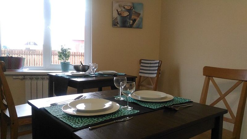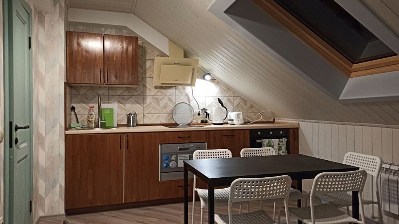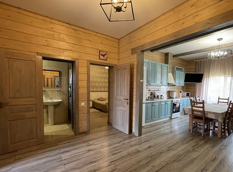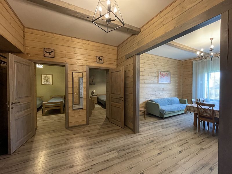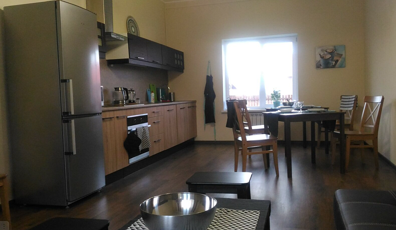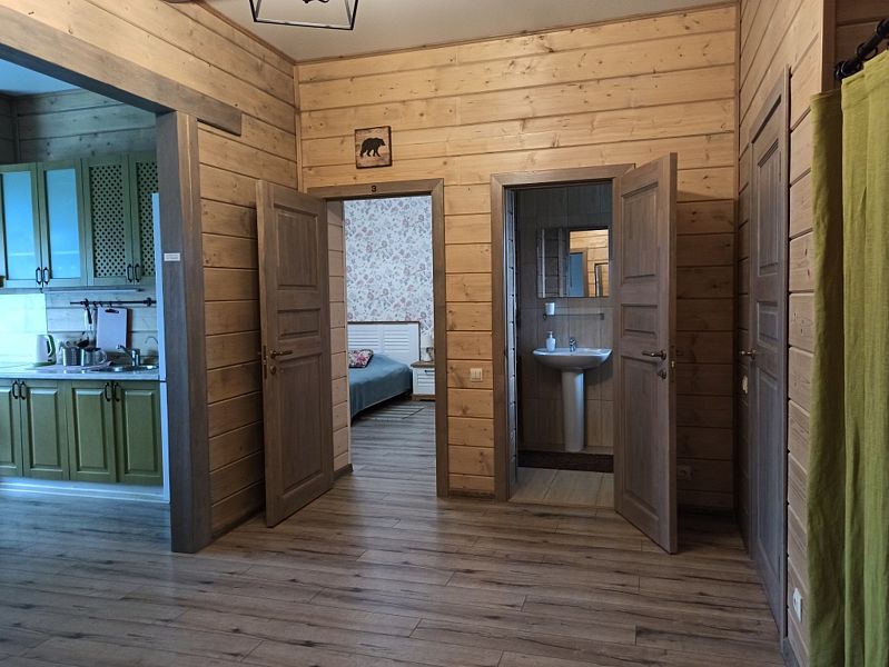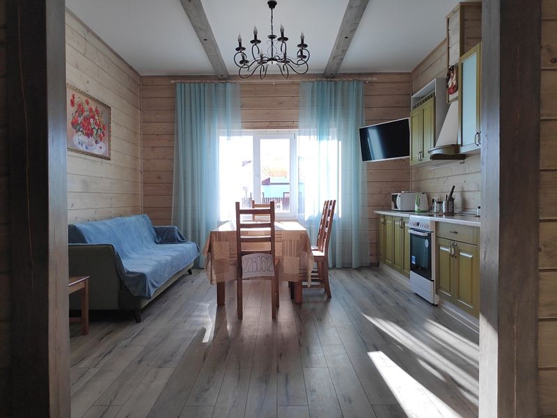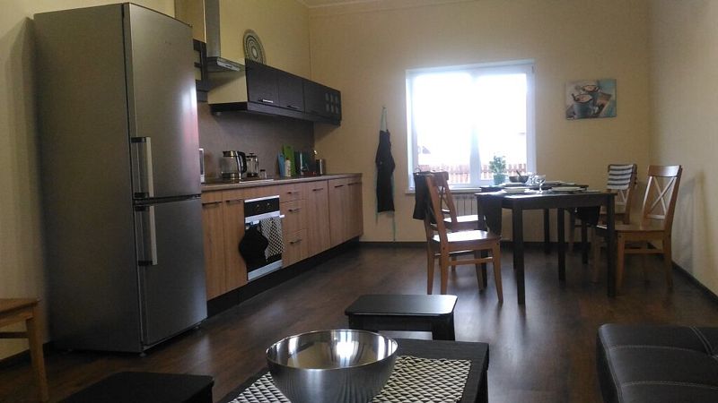 Апартаменты с двумя спальнями, гостиной, кухней и двумя санузлами. На кухне есть холодильник, посудомойка и все необходимое для приготовления и приема пищи. Апартаменты расположены на втором этаже, имеют отдельный вход.