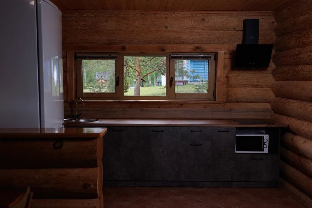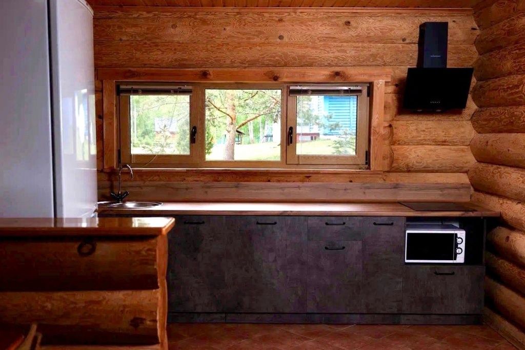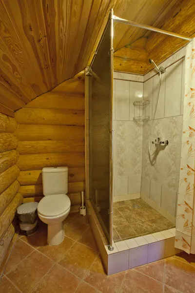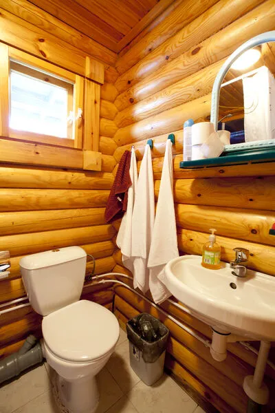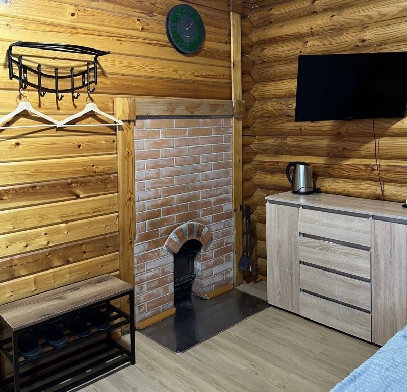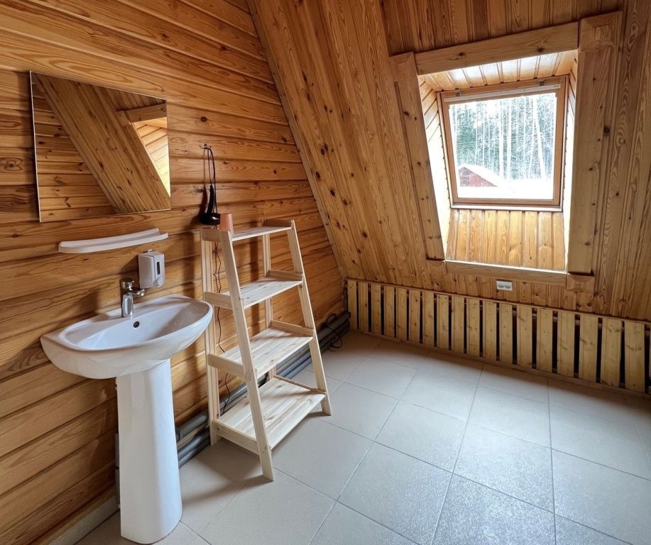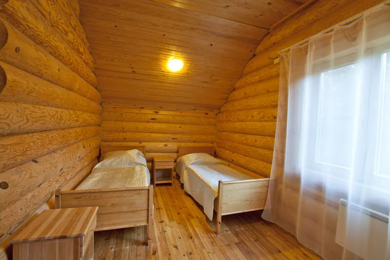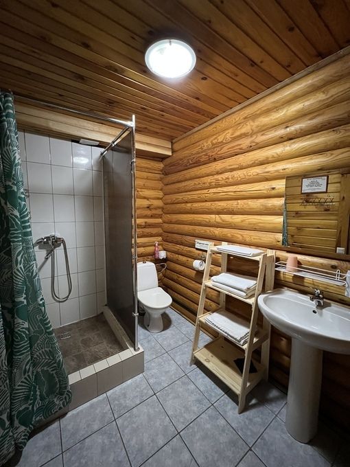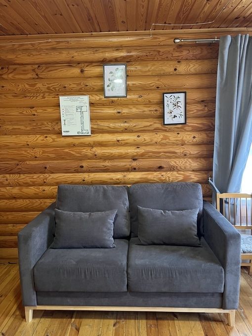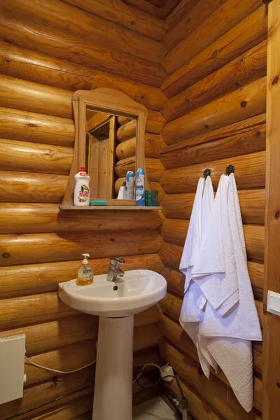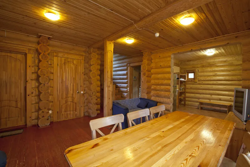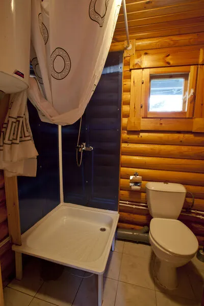 В коттедже расположены: большая комната, санузел, душевая и дровяная баня.