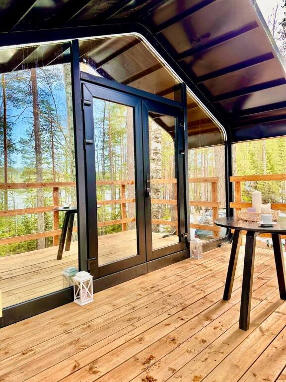 Глэмпинг Панорама - коттедж с панорамными окнами и видом на озеро