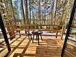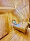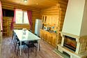 Двухэтажный дом с верандой. В доме 5 спален, 4 с/у, сауна, кухня, камин, микроволновка, чайник, телевизор (спутниковое), холодильник, обогреватели.