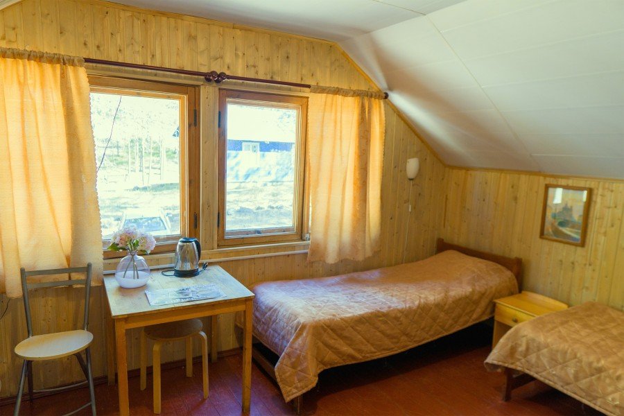 Номера на 2 человека, имеется обогреватель, чайник, телевизор. С/у общий на 2 номера.