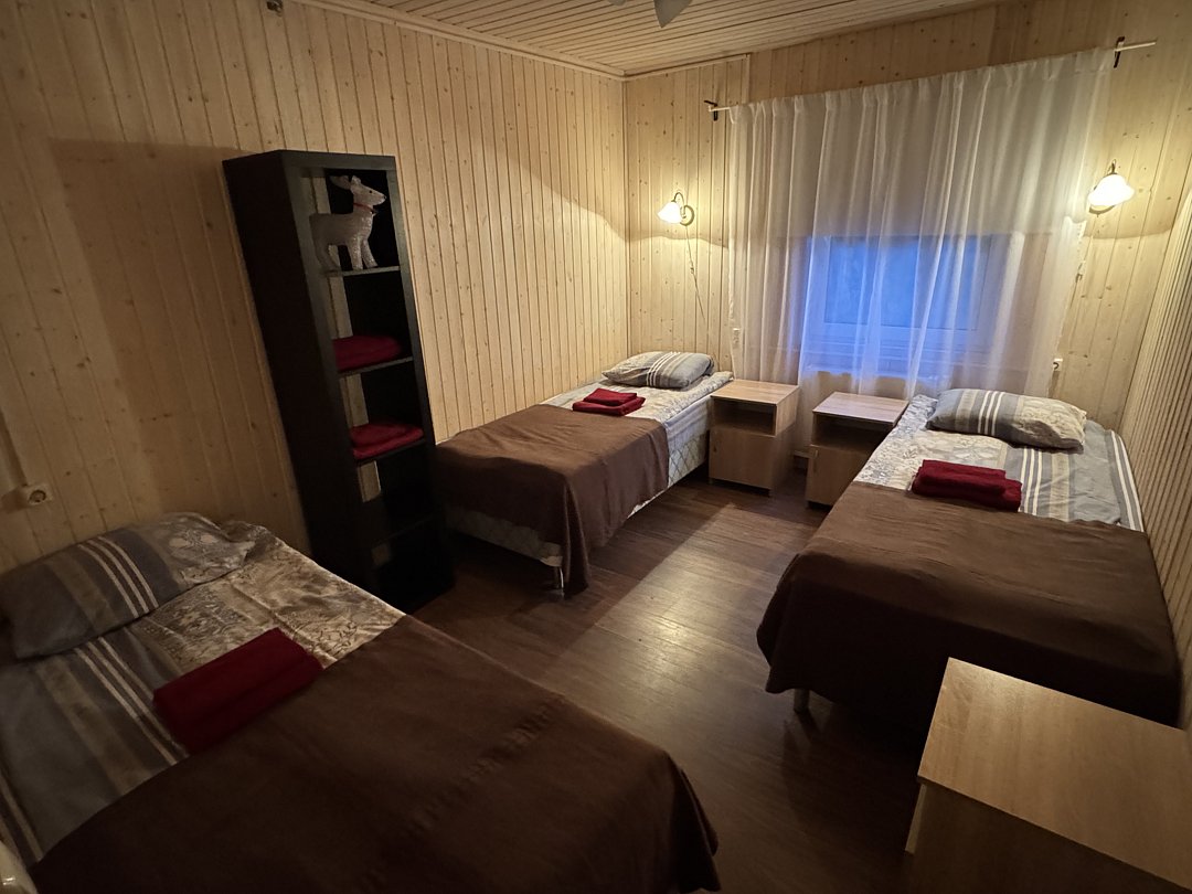В доме 3 спальни, 1 с/у, сауна, мини-кухня, микроволновка, чайник, телевизор, холодильник, обогреватели.