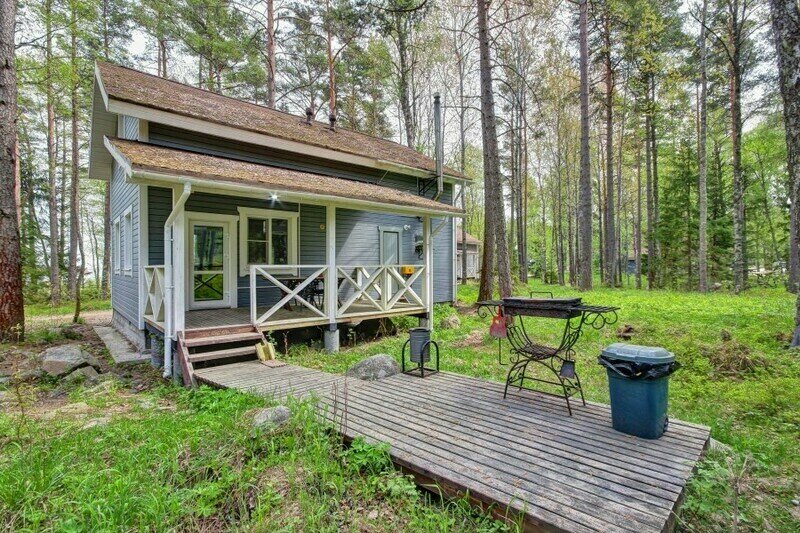 Одноэтажный коттедж с двумя спальнями и дровяной сауной. Коттедж состоит из прихожей, кухни-гостиной, ванной комнаты. Также, на первом этаже расположены две спальни. Есть второй выход на просторную террасу с видом на Ладожское озеро и экотропы. На кухне есть все необходимое для комфортного проживания: холодильник, варочная панель, посудомоечная машина, микроволновая печь, чайник, комплект посуды, фен, стиральная машина, вся необходимая мебель, мангал. Общая площадь коттеджа 85 м.кв.