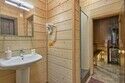 Двухэтажный коттедж с 3 спальнями, дровяной сауной и камином. Расположен неподалеку от ресепшена. Первый этаж коттеджа состоит из просторной прихожей, кухни-гостиной, ванной комнаты и одной спальни. На втором этаже две спальни и санузел. Коттедж оборудован всем необходимым для комфортного проживания: холодильник, варочная панель, духовка, посудомоечная машина, микроволновая печь, чайник, комплект посуды, фен, стиральная машина, вся необходимая мебель, мангал. Комфортное размещение до 6 человек + на дополнительных раскладывающихся креслах может разместится 4 человека . Общая площадь коттеджа 165 м.кв.