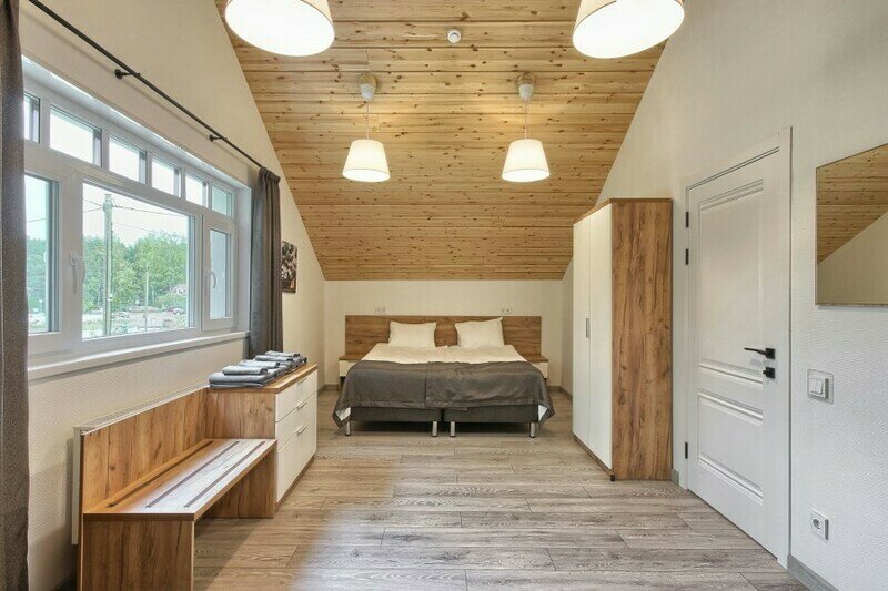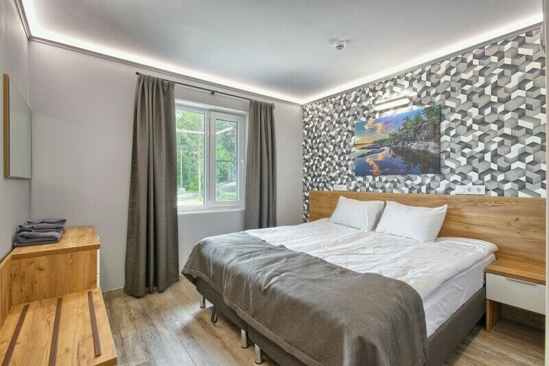 Уютный номер с видом на Ладожское озеро. Номера включают в себя: прихожую, санузел с душевой, уютную спальню, кухню, обособленную террасу с видом на Ладожское озеро. Каждый номер оснащен всем необходимым: холодильник, микроволновая печь, чайник, электрическая варочная панель, комплект посуды, телевизор, фен, постельное белье, полотенца. На берегу Ладоги для гостей номеров организовано место для барбекю в беседке с садовой мебелью.
