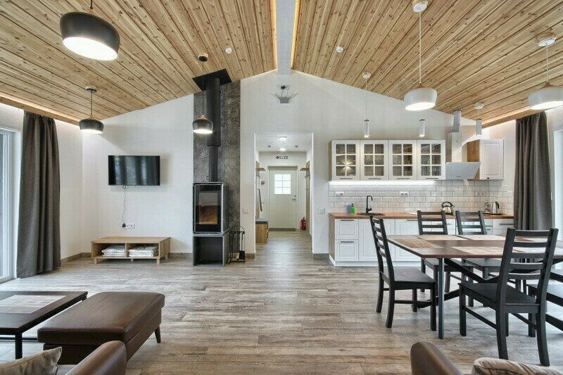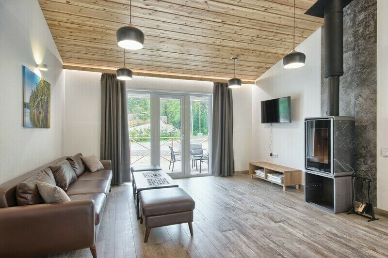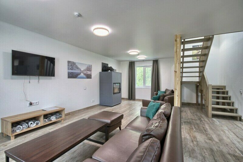 Двухэтажный коттедж с 3 спальнями, дровяной сауной и камином.