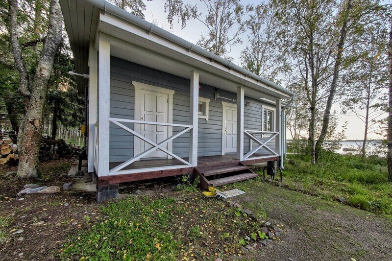 Двухэтажный коттедж с дровяной сауной. Расположен прямо на берегу Ладожского озера. Первый этаж коттеджа состоит из просторной прихожей, кухни-гостиной, ванной комнаты. На втором этаже две спальни и санузел. Коттедж оборудован всем необходимым для комфортного проживания: холодильник, варочная панель, посудомоечная машина, микроволновая печь, чайник, комплект посуды, фен, стиральная машина, вся необходимая мебель, в том числе большой диван, где с комфортом можно дополнительно разместить 2 человека, мангал. Общая жилая площадь коттеджа 120 м.кв.