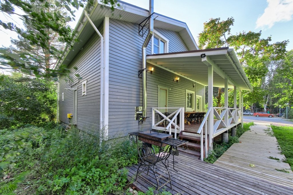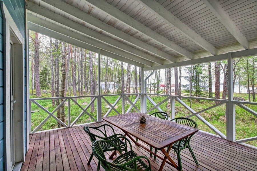 Двухэтажный коттедж с двумя спальнями и дровяной сауной. Терраса с видом на Ладожское озеро. Первый этаж коттеджа состоит из просторной прихожей, кухни-гостиной, ванной комнаты. На втором этаже две просторные спальни, санузел. Коттедж оборудован всем необходимым для длительного и комфортного проживания семьи или компании; холодильник, варочная панель, посудомоечная машина, микроволновая печь, чайник, комплект посуды, фен, стиральная машина, вся необходимая мебель, мангал. Общая площадь коттеджа 120 м.кв.