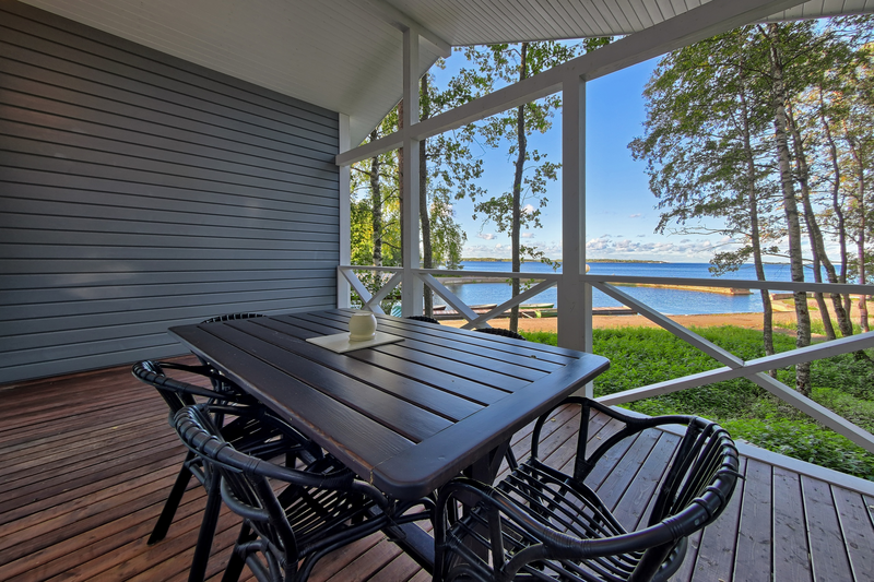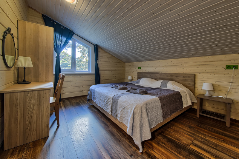 Уютный номер с видом на Ладожское озеро. Номера включают в себя: прихожую, санузел с душевой, уютную спальню, кухню, обособленную террасу с видом на Ладожское озеро. Каждый номер оснащен всем необходимым: холодильник, микроволновая печь, чайник, электрическая варочная панель, комплект посуды, телевизор, фен, постельное белье, полотенца. Общая площадь номера 29 м.кв. На берегу Ладоги для гостей номеров организовано место для барбекю в беседке с садовой мебелью.