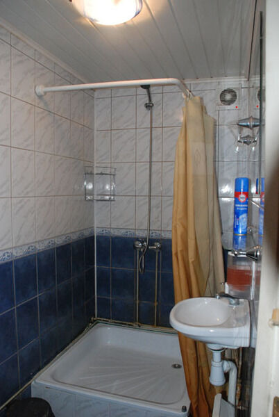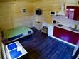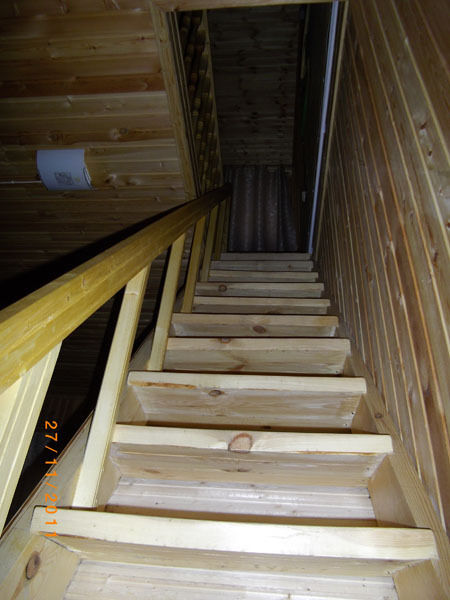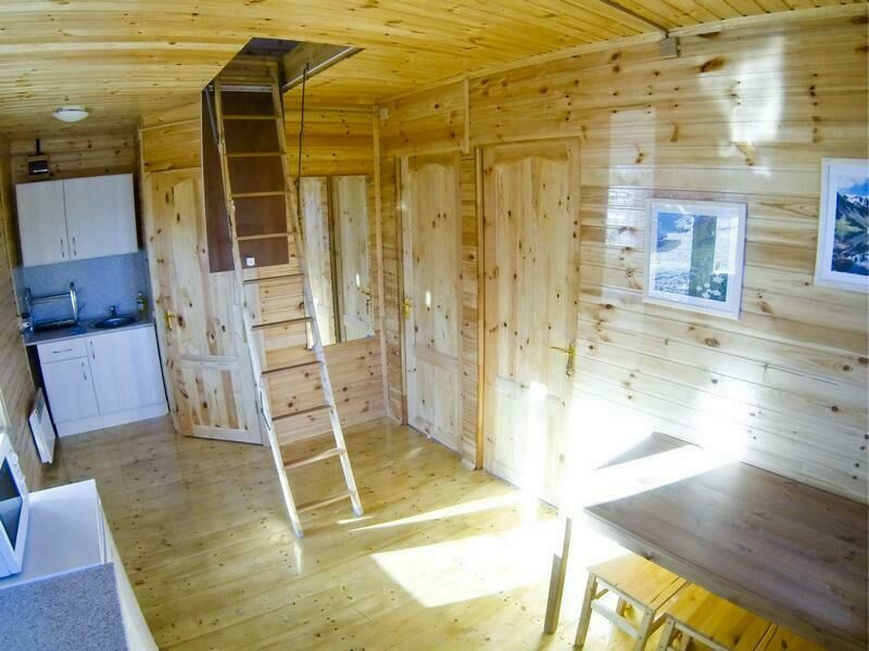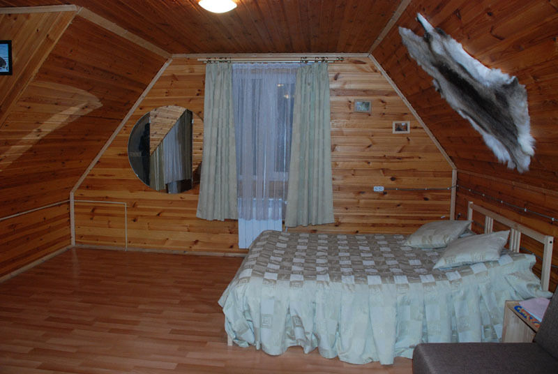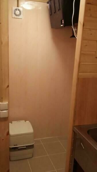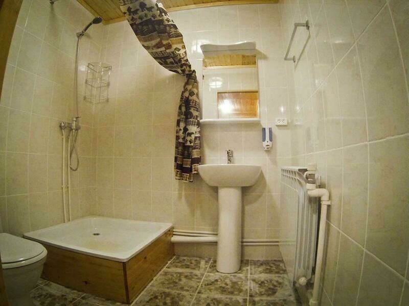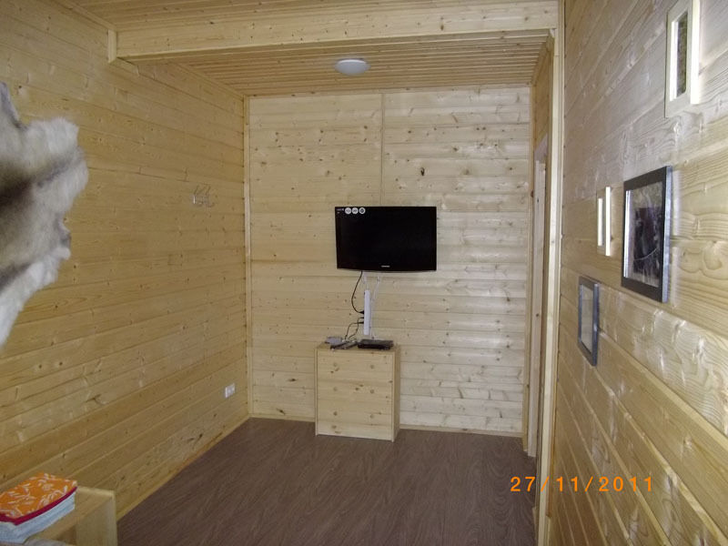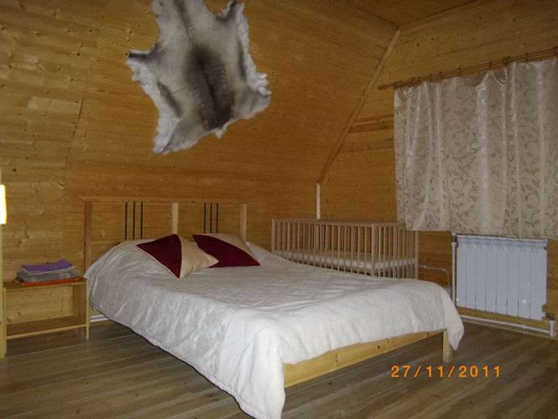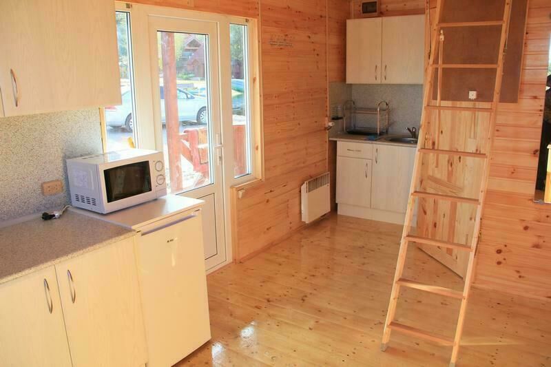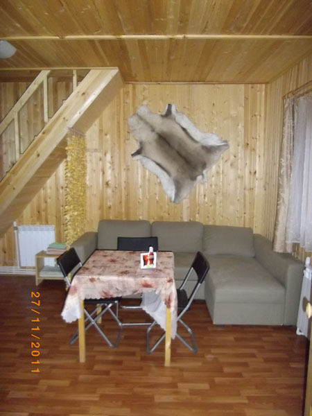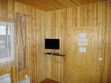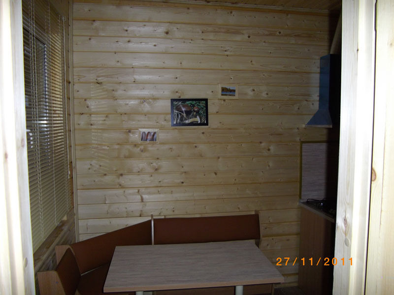 Первый этаж: Сделан на подобии однокомнатной квартиры студии, 2-х спальная кровать, ТВ, полностью оборудованная кухня, холодильник, плита, СВЧ, эл. чайник, посуда. Сан. узел с душевой кабиной.